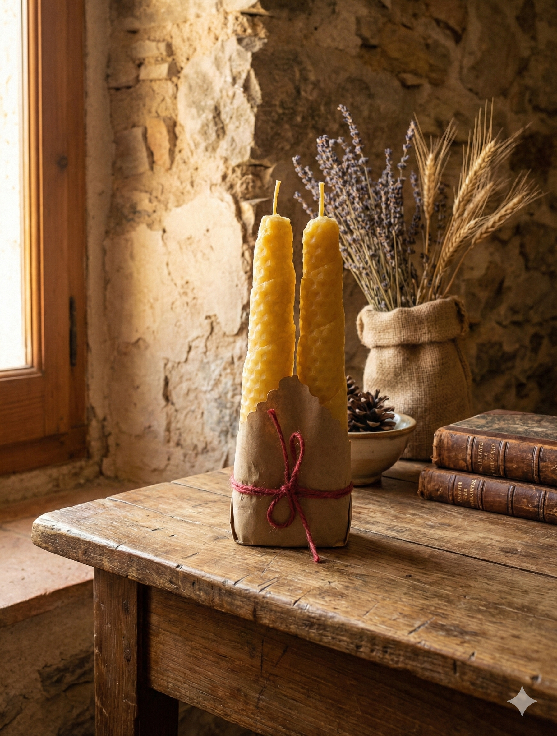 Pareja de Velas de Miel: Luz Artesana desde el Corazón del Campo
